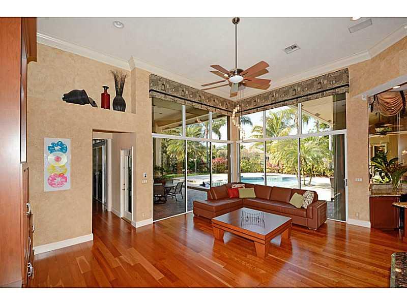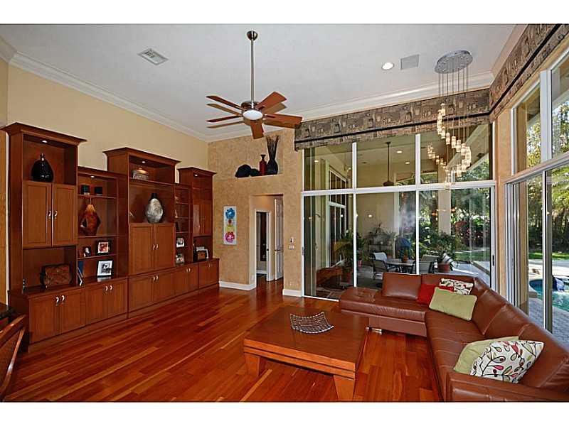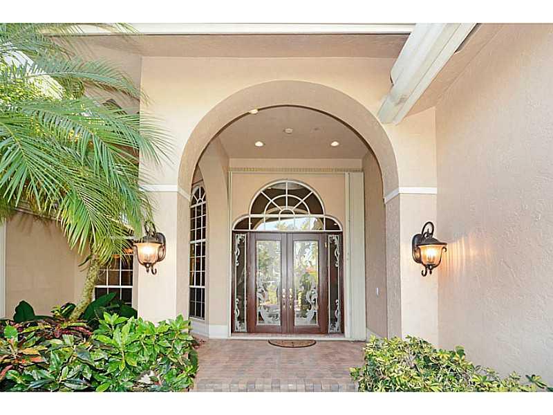 Lakefront estate w. over 4800' sq. of living area, 5BR/5FB/1HB plus office & Media Room w. custom wall unit & library. Gourmet kitchen w. granite counters, backsplash, center island, upgraded S/S appliances, incl. Sub-Zero refrigerator, 42" cherry cabinet s, under-cabinet lighting & huge pantry. Granite wet bar w. wine refrigerator & sink. Spa-like MBA w. granite counters, dual sinks & spa tub. Resort style heated pool/spa & patio. Real wood flooring throughout. Accordions shutters & backup generator.