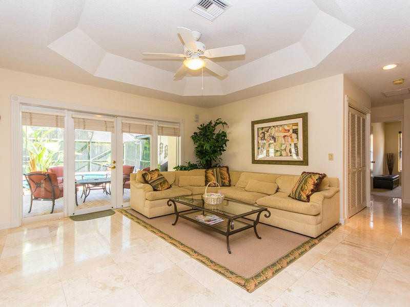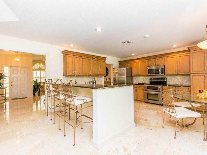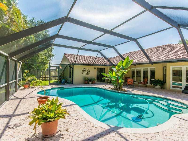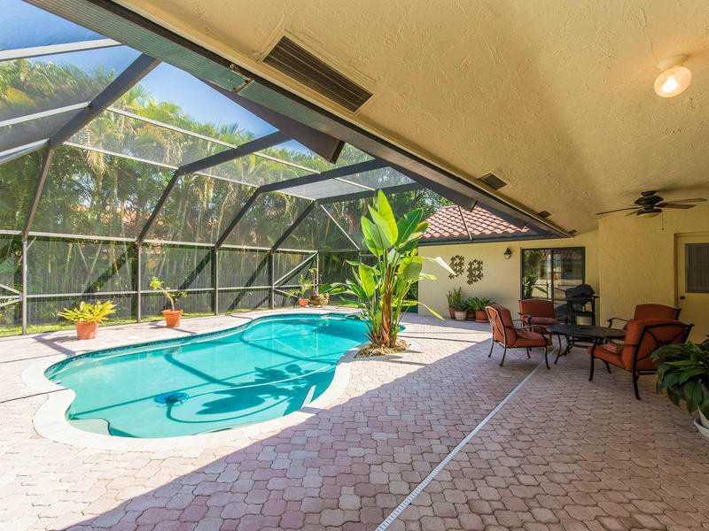 Welcome to your new home, meticulously maintained and upgraded over the years with Travertine marble floors,Custom built wall unit in family room, white wood blinds, French doors, Fluted casings with rosettes, Upgraded kitchen with stainless steel applian ces and granite counter tops in 2010 Custom tile in bathrooms with frameless shower doors. Barrel tile roof replaced in 2008 Free form pool with screened enclosure and brick pavers New hurricane rated garage door replaced in 2014. A WINNER.