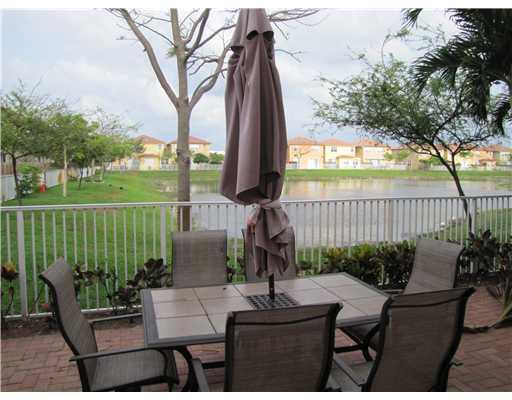 Very nice lake view and lot of upgrades (stainless steel appliances, tile on garage, pavers on patio, crown molding, courtain shutters, lamps) on this very well maintained coach home at Island at Doral. No short sale no REO and very motivated owner. Co mmunity pool is just one house away.