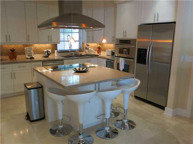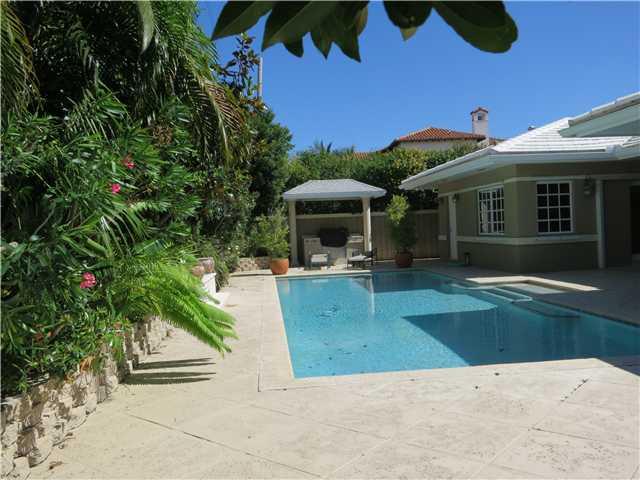 Move right in and enjoy all the ambiance of tropical elegant island living! 3 / 4 + den totally updated home featuring a see-through living room overlooking the covered terrace and private landscaped patio with full size, heated pool & outdoor BBQ area. The chef's kitchen is highlighted by a Miele stove with GE Monogram chimney hood, top-of-the-line Kitchen Aid appliances + large wine cooler. Marble flooring, all marble bathrooms, separate dining + spacious master suite. Beach Club membership inc.