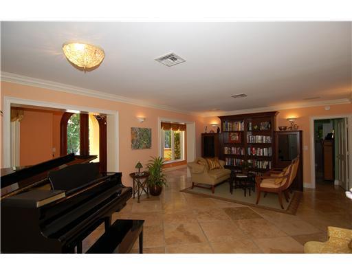 Gorgeous 5/5.5 home renovated and rebuilt in 2004. Large bedrooms and living space w/elegant finishing. 24x24 chiseled Travertine floors throughout, mahogany front doors with impact glass, hand-painted Mexican tiles in the bathrooms, Pebble Tec heated poo l and spa with salt chlorinator and indoor controls, indoor/outdoor speaker system, Chicago brick driveway. Kitchen has granite counters, maple cabinets, butler's pantry. Very best price per square foot on Key Biscayne!