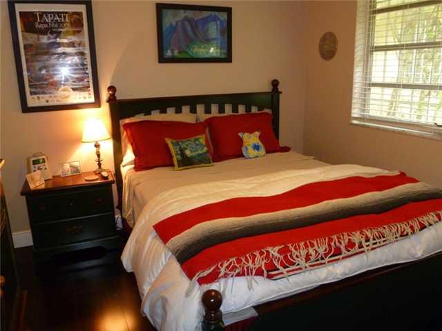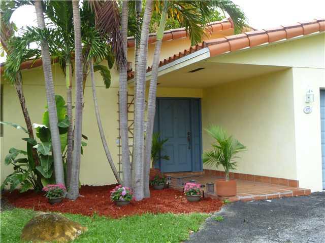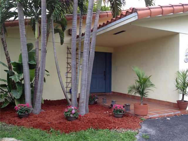Don't let the address fool this is a North Gables quiet retreat with a privacy hedge & circular driveway. Featuring a spacious living/dining area with French doors leading to patio; a separate den; immaculate espresso wood floors throughout,updated bathro om, snack counter in kitchen w/beverage cooler. The bright master suite has dressing area, 2 closets, and access to private yard. Newer roof, alarm system & superb location make this your ideal future home. Easy to show.