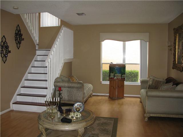 Beautifully maintained 4 bedroom 2.5 bath home located in incredible guard gated community..ceramic tile and premium wood flooring..fantastic kitchen open to family room room sliders out to patio. Secondary bedrooms are generous in size and closet space a nd ceiling fans, one bedroom also boasts hardwood flooring. Your rear lawn backs to the preserve for quiet evenings at home. Accordian shutters on all second floor windows. Resort style amenities include pool, clubhouse,tennis,basketbal,gym.