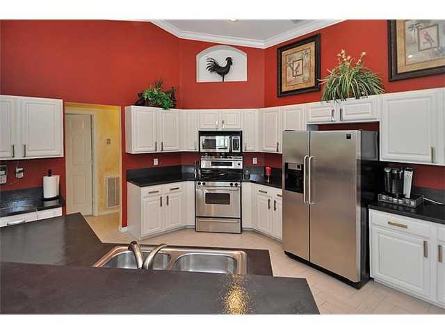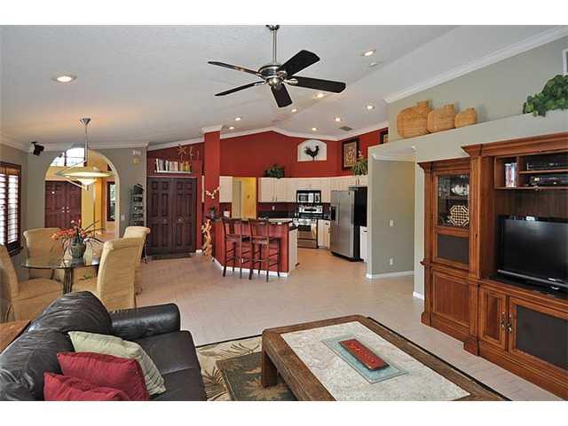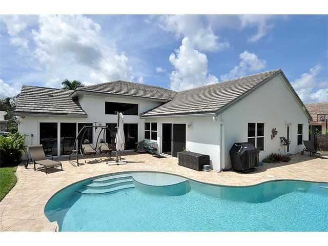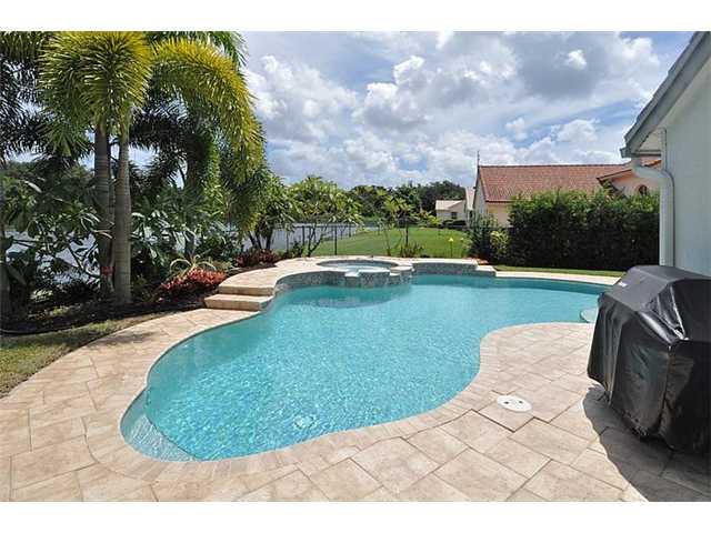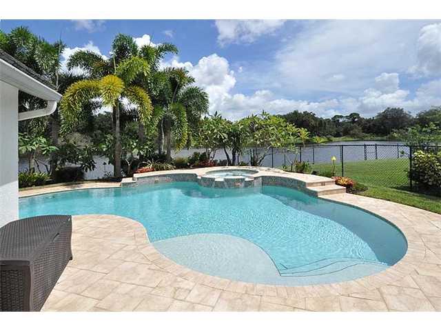 This home has the "WOW" factor; a great home for entertaining featuring an exquisite formal dining room with a stunning chandelier, an enlarged kitchen with serving counter and a backyard paradise with a salt water heated pool and spa, overlooking a spark ling lake and nature preserve. A split floor plan allows for a private guest room and bath. The 5th bedroom is a fully furnished office (furniture can remain). Some flr. panels in master bdrm damaged,seller has repair estimate and will repair or credit.