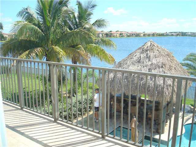 Sunset Falls...Laurena Model! This 6 bedroom, 4 bath, 3 car garage home is absolutely gorgeous. Stunning lake view features 15 x 30 heated salt water pool with jacuzzi, pool fountains and an incredible Tiki Hut area with a complete bar area. Mist system, fenced, tumble marble terrace with Bose music system and special lighting. Inside, Express maduro chesnut brazilian hardwood floors, customized paint, stainless steel appliances, crown molding throughout, impact glass doors and accordion shutters.
