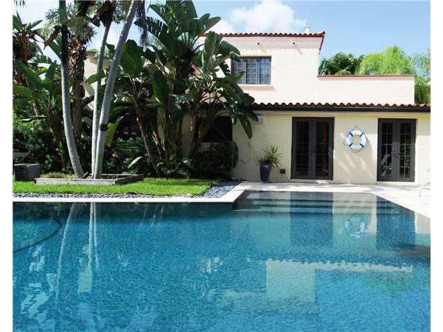 Historic 1920's 2 story Old Spanish 3/2 updated with sophistication in prized Gables' "Golden Triangle" neighborhood. 2577 adjusted sq ft. 72' X 116' lot with large, dreamy new pool and good sized yard. New impact glass doors and windows. New kitchen with Miele appliances, black granite and white custom cabinetry. Superb floor plan has foyer, den/office, living room w/fireplce, formal dining rm, large family rm facing pool, 1 bedrm down (now used as a gym) 2 up (including master) 1 bath down, 1 bath up