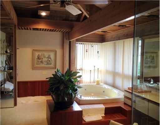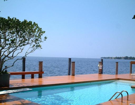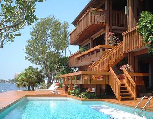 Extraordinary & unique, this Bay Front Architectural jewel features dramatic wood columns & beams accenting its impressive all glass, 2-story living areas with walls of stone & unrivaled Bay views. An inspiring master-suite sits alone atop this spectacula r home, complete w/ sitting area & private deck. Saturnia floors, a see-though fireplace, elevator, electric storm shutters, multi level decks, a beautiful pool, protected boat slip... all located at the very end of quiet, guard-gated street. Magnificent!