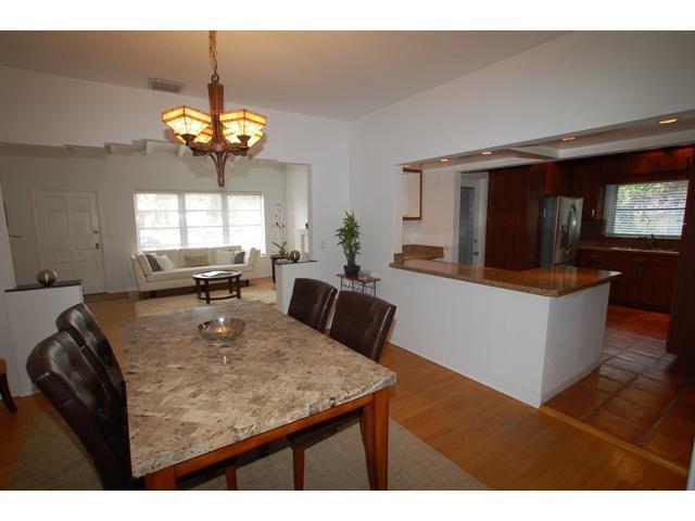 This exceptional home features charm and character with a splash of deco so elegantly appointed in the late 1930's.Stunning cathedral ceilings,decorative fireplace,ziggaret archways and hardwood flooring adorn the living room.Beautifully remodeled kitchen with a large breakfast bar.Three spacious bedrooms with a split floor plan,ample closets and a bright and airy family room leading to a expansive wood deck with a panoramic view of the lushly landscaped backyard with room for a pool and a one car garage.