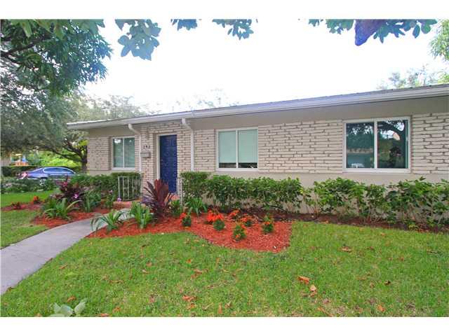 Simply elegant and beautifully renovated home in walking distance to Merrick Village and just a trolley ride to Miracle Mile. Lush residential neighborhood with all the action of urban living nearby. Impact windows and doors, custom kitchen with SS applia nces & granite, gleaming wood floors, updated baths, good closet space and a really practical functional lay out. On large corner lot, with a garage & storage, cozy patio and wonderful landscaping.Roof replaced in 2010, new impact garage door.