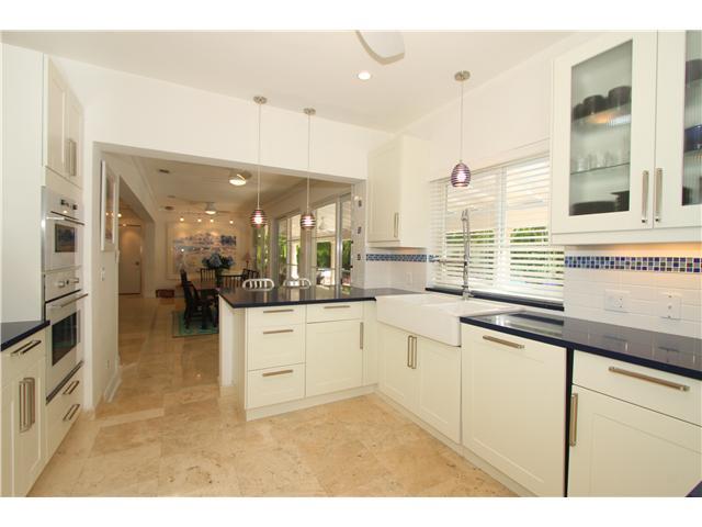 Enter through a private courtyard into this stunning home located on a quiet tree lined street. Light filled living spaces with volume ceilings. Totally renovated with attention to detail including a new chef's kitchen with state of the art appliances. Ma rble floors and impact windows throughout. 3BR/2.5BA in the main house & a 1BR/1BA detached cottage. Walls of glass open to expansive covered terrace & lush private gardens surrounding the tropical pool with waterfall.