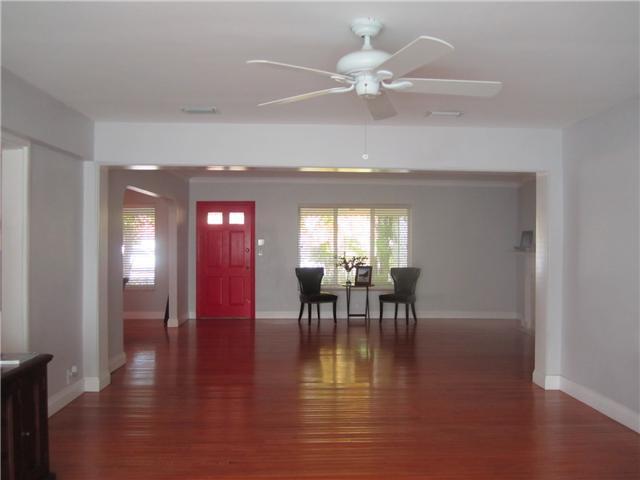 Located in a beautiful tree-lined street this wonderful home offers comfort and functionality. Sunny open floor plan includes 3 bedrooms, 3 baths, formal living, dining, family room overlooking garden and patio, wood floors, crown moldings, baseboard, cei ling fans, fireplace, impact glass windows throughout, updated kitchen, fenced tropical backyard and a 1 car garage; overall a home filled with charm and a wonderful curb appeal. House is 2, 142 square feet as per owner.