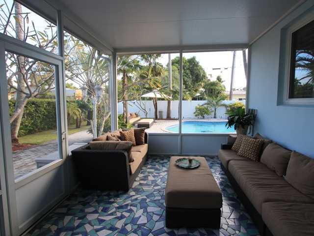 Charming 3-bed/2-bath home with den boasts beautiful wood floors and authentic Art Deco details (ornate fireplace). Updated white on white kitchen with gas cooking. Remodeled bathrooms. Comfortable screened porch leads to large yard (double lot) with tro pical landscaping and custom pool. One-car garage. Lots of upgrades including impact windows & doors, new A/C. In the heart of historic Hollywood Lakes -- between Young Circle and Hollywood Beach. It's the house on the corner with the white picket fence!