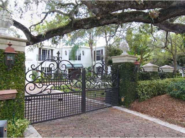 Enter this distinctive gated property & instantly feel the tranquil setting of this superb Coconut Grove estate. 4 Bedrooms, exceptional office & five & a half baths. Incredible gourmet kitchen with island seating & top of line appliances adjoins family room and embraces the outdoors thru french doors to pool area.Corner double lot boasts elegant landscaping & beautiful outdoor entertaining pool area. Beautifully & meticulously maintained residence is a MUST SHOW for your most discriminating buyers.