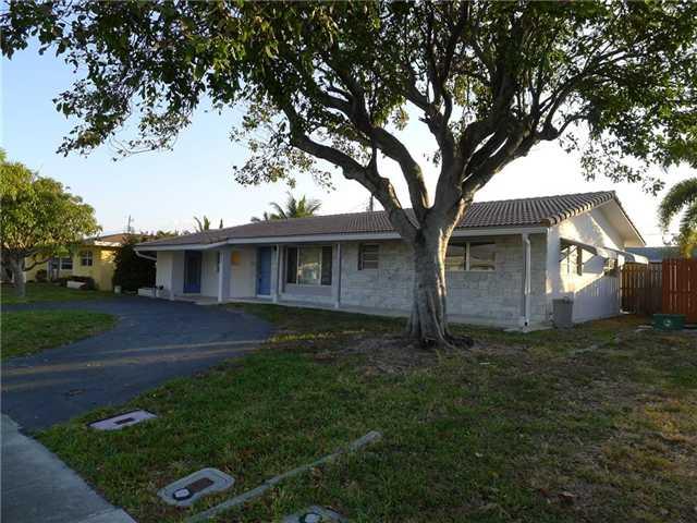 Wonderfully renovated 3 bedroom 2 bath home with new S-Tile roof, wood and 18 inch diagonal tile floors throughout, gourgeous new kitchen and baths, ceiling fans, new paint in/out and a fenced yard make this the perfect home. Nice familyroom off the kitch en is perfect for entertaining. The third bedroom has double doors off the familyroom would also be a great office. Spotless, bring you fussiest buyer, but do not wait because prices are going up fast in this desirable part of northeast Broward!