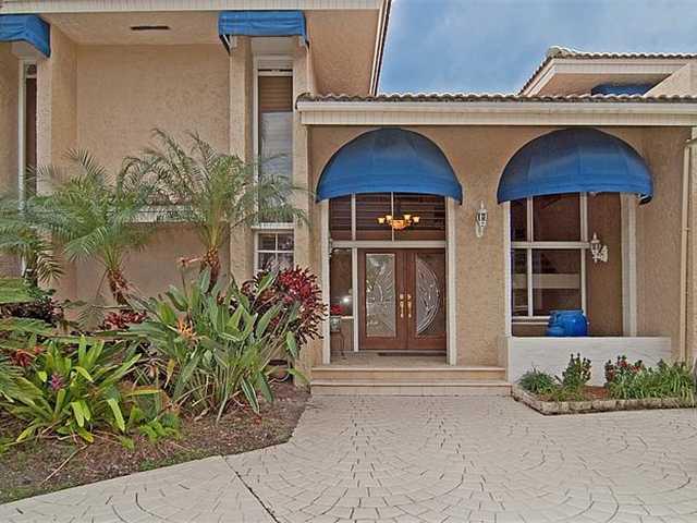This beautiful waterfront home is located in the guard-gated community of Eastern Shores and is just minutes to the Beach. Huge dock that can handle up to 160FT yacht and be on the Intracoastal waterway in minutes. Concrete privacy wall surrounds the prop erty. This home is on a double lot with lighted tennis court. High ceilings in living room with real coral rock wall. Master suite w/his & her WIC. Steam shower. All tiled pool. Storm Shutters. Top rated schools. Walk to shopping, dining, movies.