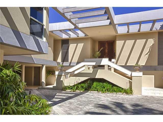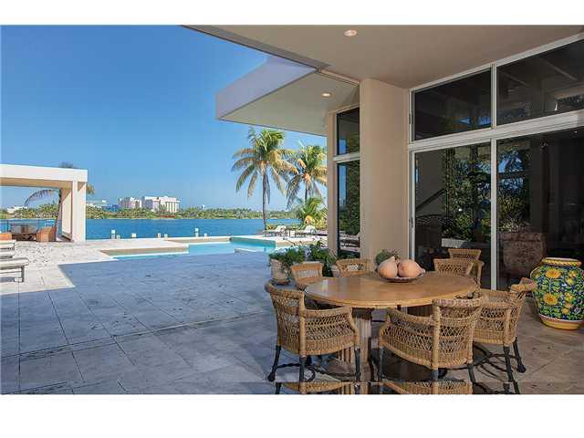 Modern bi-level 6BR/6+2BA waterfront home on gated Sunset Island I. Travertine flrs, wood beam ceilings, skylights, lg picture windows, many custom built-ins. Lg master suite: sep. seating area, lg all custom walk-in closet, all Carrera marble BA, spa tu b w/ priv. terr, 2 showers (1 steam); gourmet kit., split BR plan (master + 4 on other side). Lower level: temp ctrl wine rm, air-cond. full gym w/TV & sound system, guest suite w/ sep entrance, indoor gardens. Pool w/cabana bath. 97ft of water frontage.