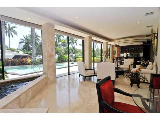 Expansive glass and large comfortable spaces are the hallmarks of this island residence. GREAT for entertaining and for those who want to be pampered by their environment. Open floor plan, indoor water feature,built-in bar, huge master, sleek infinity poo l with bronze statue fountain, cozy media room, chef's kitchen with indoor grill, 70ft fully equipped dock and 2 car garage are all immaculate. Located on a prestigious gated island just a stroll away from world renown South Beach.