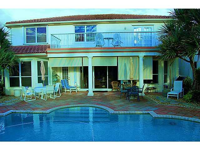 Spectacular waterfront pool home, 3 car garage. Five BR, 2.5 Bath. 5th BR currently configured as huge loft opening to waterview balcony. Former model home w/ gorgeous detailing, inset marble tile, superb lighting & window dressings, newer remodeling & u pgrades throughout the home. Granite kitchen w/ top cabinetry, breakfast nook overlooking lush tropically landscaped fenced yard w/ covered patio, salt-treated pool & fruit trees. Superb location, walk to Miramar Tennis complex, Great schools & much more.