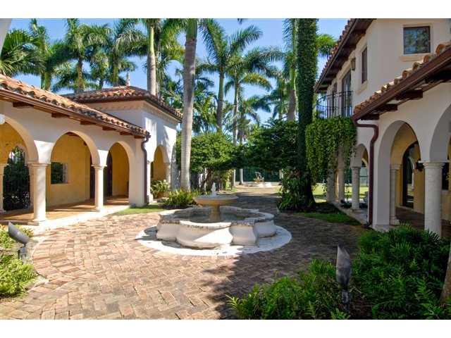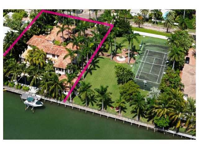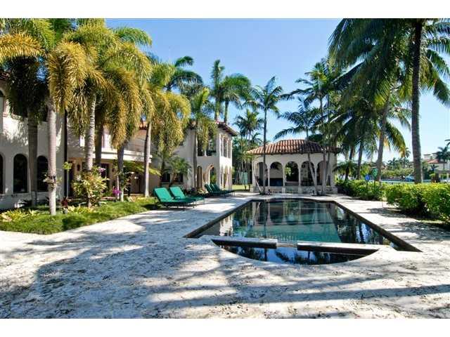 Enchanting Mediterranean compound. Beautifully designed w/French doors, large windows, verandas, terraces, focal fountains & breathtaking courtyard entry.120ft waterfront w/dock & pool pavilion. Lavish Master w/His & Hers baths, sitting room & 4 terraces . Handsome custom millwork. Huge kitchen w/adjoining family room. State of the art smart-house. 1 of the best & rarest on the market. On gated island, close to world renown S. Beach. Also available w/ second lot. Total 48,000sf w/240ft waterfront $12.5M.