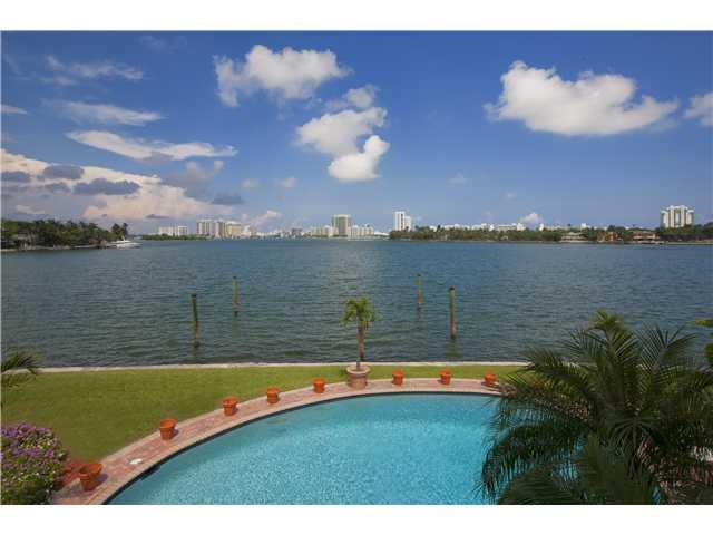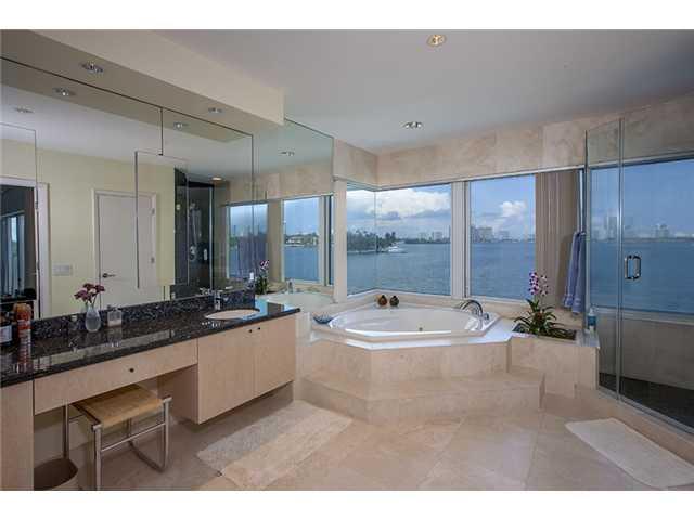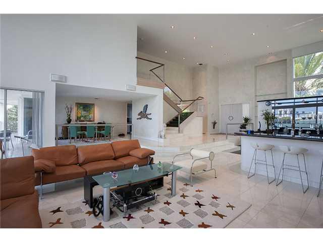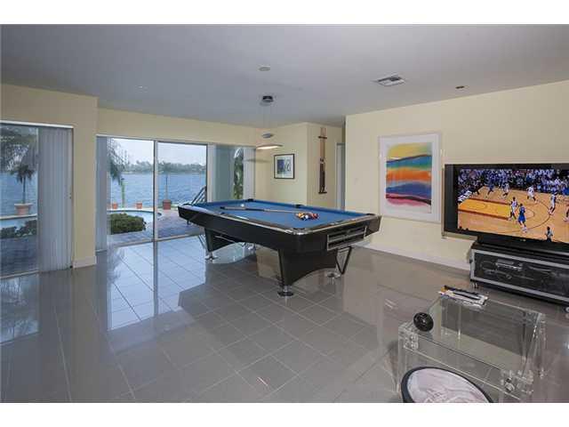 Unique, tri-level, 5BR/4+1 BA waterfront home. Open layout of living, dining and family rooms with 20+ foot ceilings. Floor to ceiling windows with great waterfrnt views. Travertine Navonia and Porcelain tile flrs. Zebra wood custom tables & stair railing . Most rooms w/water views, access to covered balcony. Pool, spa surrounded by tumbled marble. First level with regulation Brunswick pool table, bar, 1BR/1BA plus additional 1400 SF basement, which can be recording studio, rec room, +/-110ft on the water.