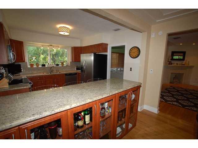 THIS EXQUISITE TWO BEDROOM HOME FEATURES A SPACIOUS KITCHEN WITH GRANITE COUNTERTOPS, BREAKFAST BAR AND STAINLESS STEEL APPLIANCES, BEAUTIFUL BATHROOM ADORNED WITH TRAVERTINE MARBLE, RESTORED HARDWOOD FLOORS, FAUX FIREPLACE, CROWN MOLDINGS, RECESSED LIGHT ING, BRIGHT AND AIRY FAMILY ROOM AND LARGE BEDROOMS. SECOND BATH IS IN THE OVERSIZED GARAGE. THIS 12,800 SQUARE FOOT LOT IS TASTEFULLY LANDSCAPED, HAS PLENTY OF ROOM FOR A POOL AND HAS MANGO AND AVOCADO TREES ON THE PROPERTY.THIS HOME IS A MUST SEE !
