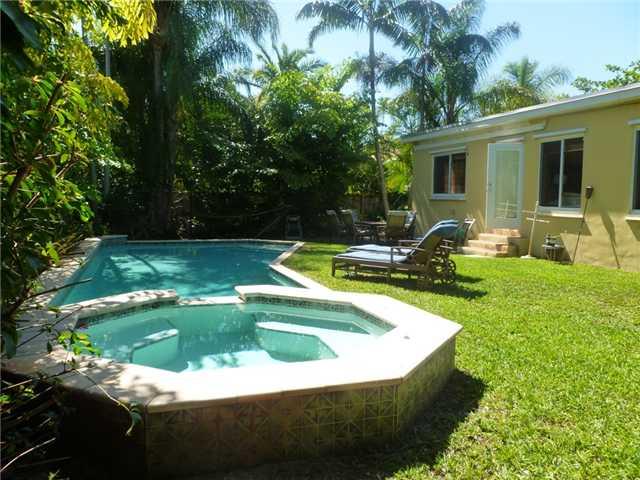Art Deco "charmer"..w/POOL! Modern conveniences!Nestled on a quiet tree-lined street..stroll to restaurants, library & Starbucks!Spacious Master bedrm has it's own updated bathroom. Large kitchen w/breakfast bar is the heart of this home,opening to dining room & family room w/lots of natural light.The oversized pool & Jacuzzi is surrounded by lush foliage providing nice privacy.Split bedroom plan. Garage is a plus! Polished wood floors+Mexican Tile.Sq.ft.guess of owner.