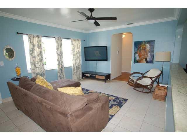 Adorned with charm & character this 1940's home features: hardwood flooring, an open floor plan, tastefully remodeled kitchen with breakfast bar, beamed ceilings in dining area, spacious bedrooms and updated bathroom. The large Covered patio overlooks the tropical lush landscaping plus an organic garden including a variety of fruits and vegetables still with plenty of room for a pool. One car garage with ample storage.