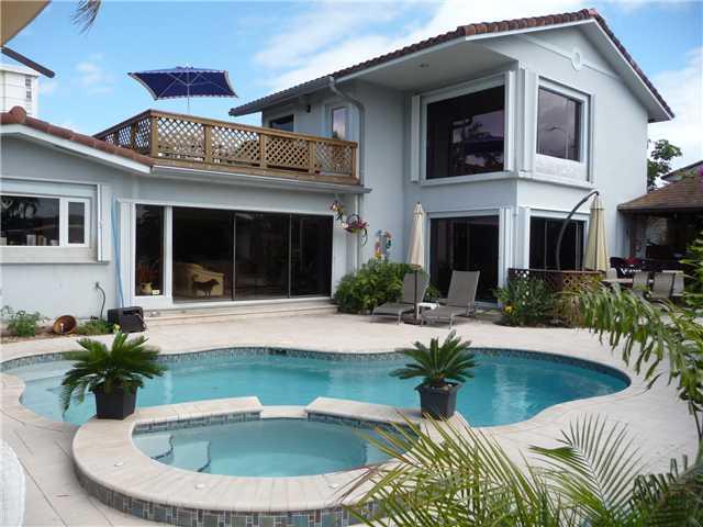 Spacious waterfront home in Keystone Point! 75 feet of waterfront with direct ocean access and new boatlift. New gas heated pool. New eat-in gourmet kitchen. Great backyard space with gazebo - perfect for entertaining. Open living area with large Master Bedroom with sitting area downstairs. Spiral staircase leads to second floor suite - perfect for guests or in-laws - huge bedroom, full bath and den with access to second floor balcony and wet bar. Extended garage allows for utility and storage.