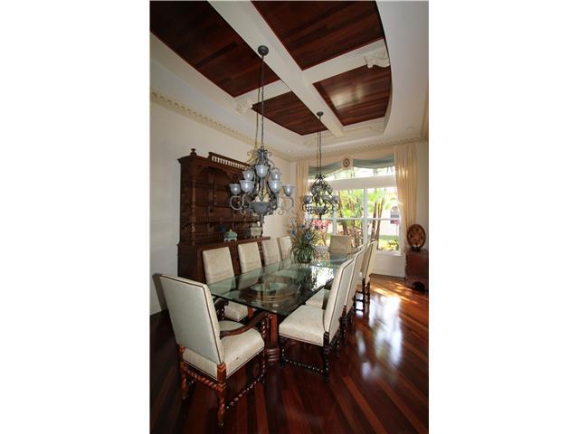 The model home of the Riverstone Development. Stunning water view, salt water pool with Jacuzzi and stone water slide, lush tropical landscaping. Coffered ceilings, crown molding and custom window treatments throughout. Beautiful light fixtures and chand eliers, his & hers master bathrooms, walk in closets and pantry, home movie theater & recreation room with pool table. Kohler Generator & accordion hurricane shutters. Competitively priced, immaculately maintained home. See attachments for floorplan.