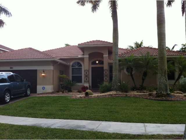 This 1-story 5/3 Model-Like home in desirable Cove III in Weston boast a professional landscape,an elegant entry w/ high vaulted ceilings, a beautiful kitchen w/stainless steel appliances and 42" wood cabinets overlooking a large family room & breakfast nook. Many upgrades include granite in kitchen and bathrooms, built-in closets, tile & laminate wood flooring & designer lighting, crown molding & french doors just to mention a few ! Large lot w/room for pool.Property won't last,it is move in ready !