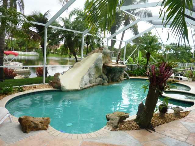 Spectacular waterfront pool home in top manned-gated Silver Lakes Community. Five BR, 3 full baths, plus loft/office. Tropical resort w/ private dock, lakeside lifestyle. Gorgeous kitchen w/marble counters, top cabinetry, ss steel appliances, big pantry, breakfast nook. Covered/screened patio, heated pool, lake. Huge master, walk-in closets, lake view balcony. Upgraded throughout, beautiful wood floors, volume ceilings & windows, designer lighting & window dressings. Perfect location. Sunset Lakes Elem.