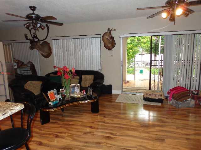 Lake front 4 Bedroom 3 Bath with granite and wood cabinets, wood floors, covered patio, large family room, 5 year new roof, large storage room built with permits, lots of fruit trees, office 2 zone, A/C.