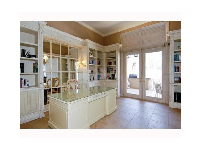 Spectacular 5 bdrm plus office 4.5 bath home, featured in Architectural Digest, boasts a gourmet center island kitchen w/wood cabinetry & granite, distressed marble floors, Venetian plaster walls, newly remodel bathrooms, decorative shutters, detailed w/m oldings & designer touches. 1/1 guest house. Patio complete w/custom pool deck & summer kitchen to enjoy outdoor life style. Corner lot Walled & hedged for privacy. Side entry garage. Professionally landscaped. Steps to community play area. Guard gated.