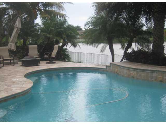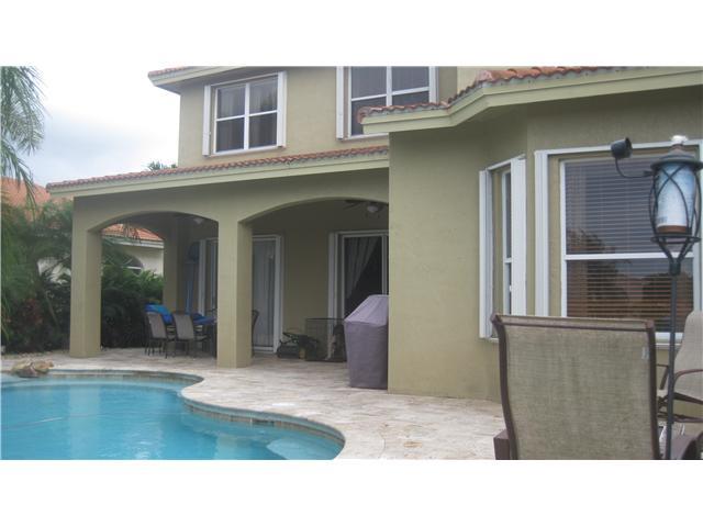 Montecarlo Estates Monarch Lakes Lakefront Mediterranean style home with pool, & 2-car garage. Features 3,180 sq. ft. of living area. 5 bed/3 bath/1 h-bath. Interior features 1st floor: one master bedroom w/ full bath. 1/half bath, formal living & dining, open kitchen adjacent to family room. 2 car garage w/builtin shelves, 2 door a/c unit. 2nd floor: master suite w/master bath, walk in closet w/built in shelves. 3 bedrooms, 2nd bath, laundry room, & loft. Exterior feat: lakefront, lush landscaped fenced