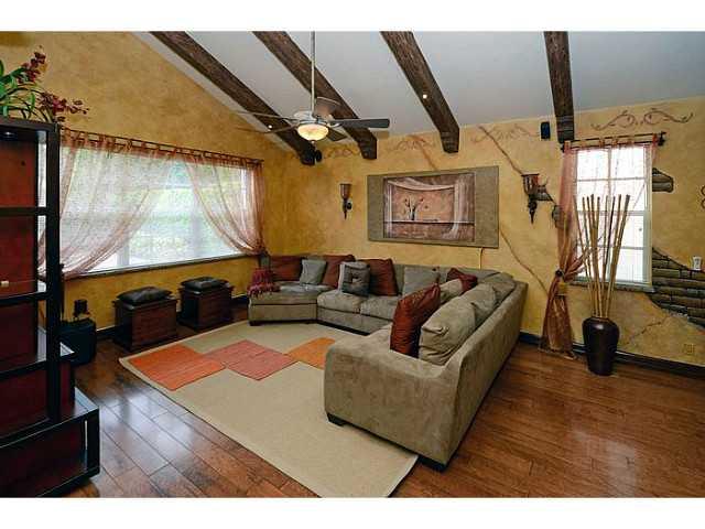 Highly upgraded 4BR/2.5BA. Gourmet kitchen boasts 42" wood cabinets, granite countertop, Brazilian tile & brass accented backsplash & stainless steel GE Monogram appliances plus wine cooler & icemaker. Exotic wood flooring throughout the entire home. Lush ly landscaped & private yard w. perimeter ficus hedges, paver patio, heated & saline chlorinated pool & spa. Other upgrades include accordion shutters on all windows, air conditioned converted garage, security system, landscape lighting.