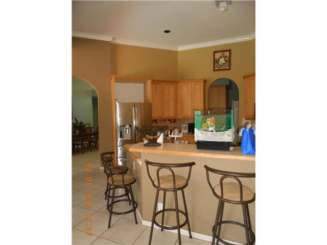 Short sale. Beautiful property, spacious floor plan, open kitchen with 42" wood cabinets, crown moldings, large windows with view to the pool, private patio hurricane shutters, tile floors on social areas and carpet on bedrooms. Cul de Sac. Don't miss thi s opportunity to show this house!!!! Sale price does not include refrigerator, dishwasher, washer, dryer & microwave.