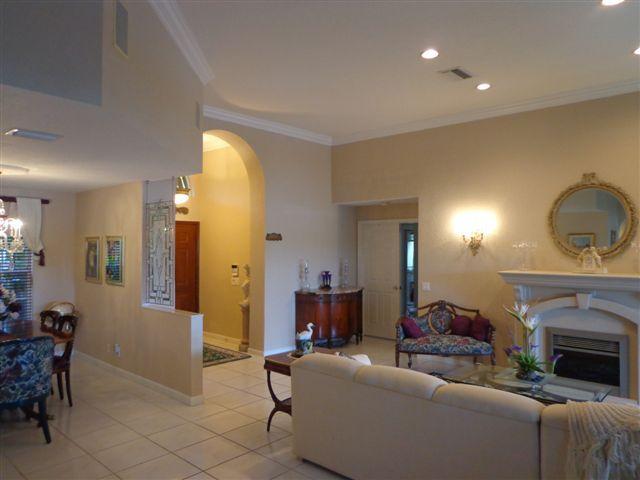 MAGNIFICENT WIDE, LONG WATERFRONT VIEW! GORGEOUS CURB APPEAL! CIRCULAR, PAVED DRIVEWAY! FABULOUS LUSH LANDSCAPING! ACCORDION SHUTTERS! ENTRY LEADS TO HIGH CEILINGS! HUGE LIVING AREA! CROWN MOLDING! TILED FLOORS THRU-OUT! 4TH BEDROOM CONVERTED TO SPACIOUS FORMAL DINING ROOM(CAN BE CHANGED BACK)! GREAT OVERSIZED KITCHEN! SUPER FAMILY ROOM! WONDERFUL PATIO OVERLOOKING THE STUNNING LAKE! NEW A/C, FANS IN ALL ROOMS, SURROUND SOUND, GARAGE WORKSHOP ADDS TO THE VALUE! PRIDE OF OWNERSHIP! SHOW & SELL THIS WINNER!