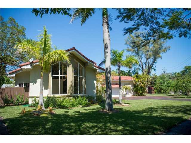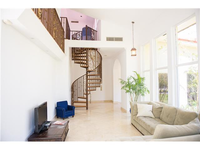 Enter through a private courtyard into this light filled home on a 1/2 acre lot in prestigious South Grove. French doors lead out to tropical gardens & an expansive terrace. Special features include vaulted ceilings, walls of windows, marble & wood floors , crown moldings & upstairs loft. Main house has 3BR/3BA with 1BR/1BA staff quarters off of the garage. Most "walkable" single family home listed in the Grove. Just ½ mile walk on the newly renovated Commodore Bike Path into the village center.