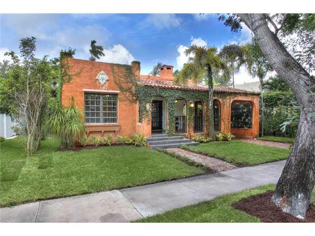 This charming Old Spanish home is located on a gated street in the North Gables. This 2 BR/1 BA home has been completely renovated and is move-in ready. This home features a covered entry porch, original wood floors throughout, a wood burning fireplace, c eiling fans, a new kitchen with solid birch cabinets, granite countertops, and stainless steel appliances. Enjoy entertaining family and friends in this home with French Doors opening to a cozy wood deck and backyard. Detached garage can be a bonus room.