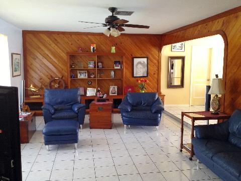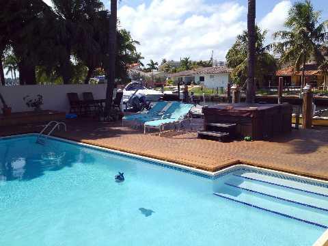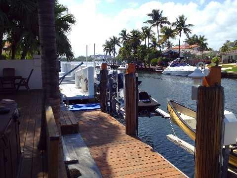 Great opportunity - Home can use some updating. Split floor plan/master suite on one side. 2 bedroom, 2 bath on other side. Family room, 2 car garage, eat-in-kitchen with pass-thru to pool area. Great backyard, boat elevator, dock, pool, spa. 24HR guard-g ated community. Direct ocean access and minutes and no fixed bridges to Haulover Inlet. 85FT ON THE WATER.
