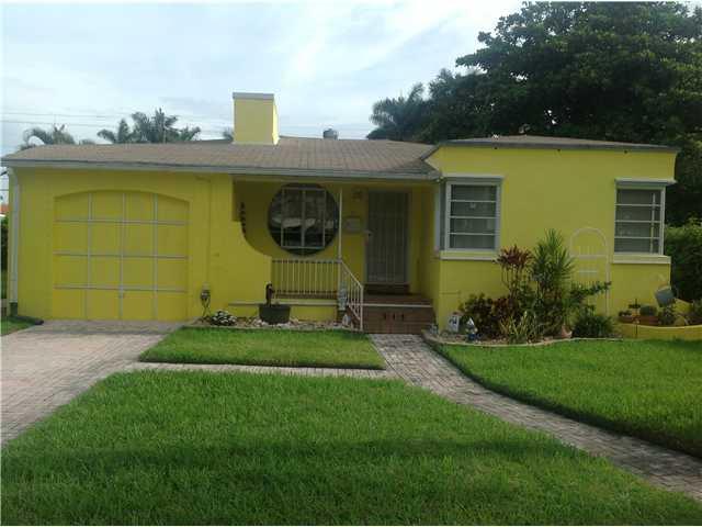 Great location & charming architectural features in the heart of Hollywood Lakes!Arches,vaulted ceiling w/exposed wood beams in living room, working fireplace, beautiful hardwood floors throughout,large circle window in front exterior. 2 large bedrooms pl us den,2 bathrooms,open front porch w/sitting area,formal dining room, small sitting area.Spacious kitchen w/ gas stove & pantry.Good sized backyard w/ 2 storage sheds. Paver driveway & walkway. Parking in front & back. Walk to beach!