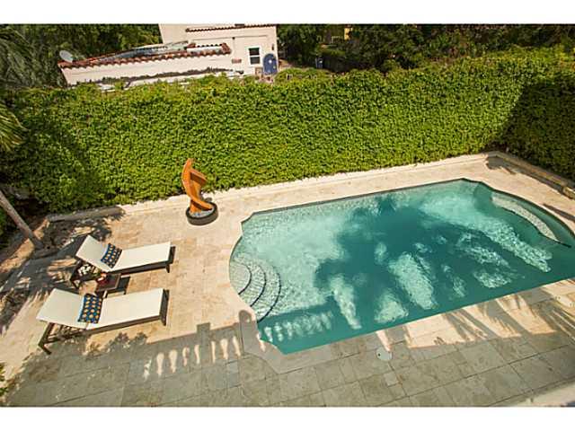 Totally redone, lovely contempory Med with modern styling, very private court yard pool area & cabana. Perfect for entertaining friends & family w/ great floor plan w/ office, elegant dining room & Florida Room downstairs. Sunny, light & bright w/ 3 bedrooms upstairs & 2 huge balconies which can be built out for extra sq. footage. Shows like a model. Move right in with impact windows, new hardwood floors, gourmet kitchen & family room, opening to private pool area & cabana.