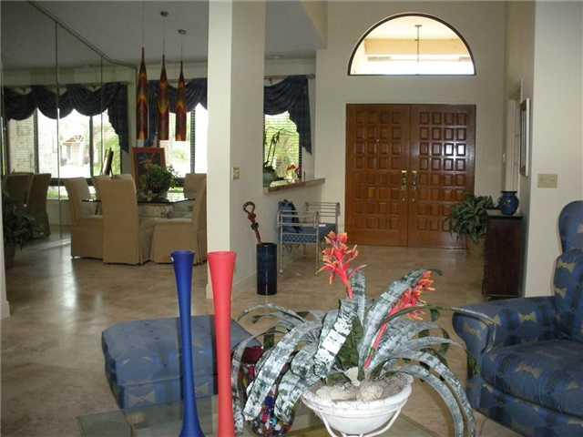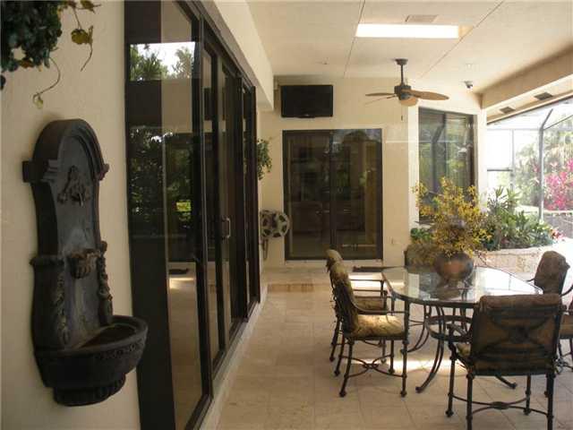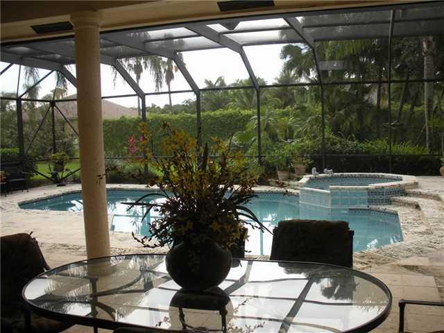 Gorgeous contemporary home. 4 beds, 3 ½ bath w/library/towering ceilings. Corner builder's acre w/cut coral rock entrance, marble floors, impact windows, barrel tile roof/screen enclosure to code, 3 central a/c units, 8 video cameras, security system, hea ted pool/spa w/new finish, 3 sky lights, central vac, phone system, built-in gas BBQ, bar w/wine/frig/ice maker, fireplace, children's wing, pool table rm, breakfast rm, soaker tub/walk in shower, laundry rm w/sink, 2 ½ car garage. Built for entertaining!