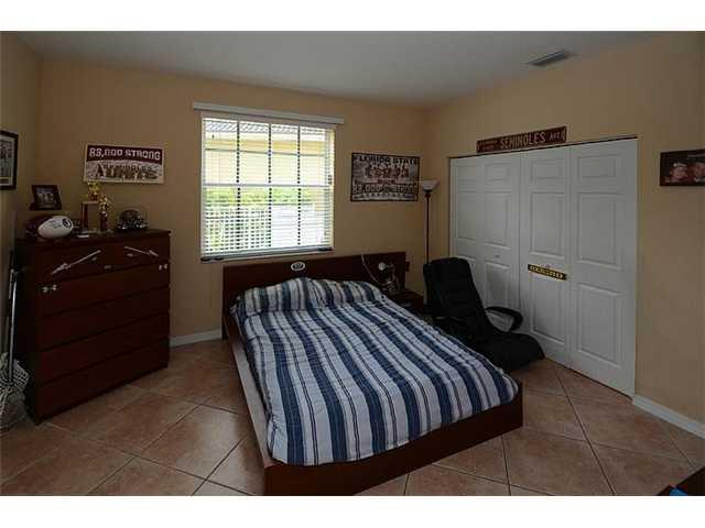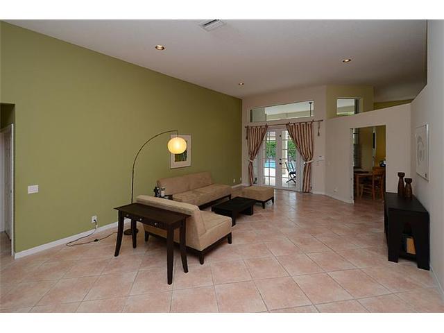 Great opportunity to live in The Grove in Savanna! One story, 4 bedrooms plus Den that can be converted into a 5th bedroom, 3.5 baths with French doors throughout the home 2 car garage home on a over sized cul-de-sac lot. Three split floor plan with neut ral tile throughout the entire home. Bright and open layout. Huge back yard fully fenced featuring a salt water smart pool and lots of room to entertain and for the kids to play. Accordion shutters in all windows. A+ schools. Excellent gated community.