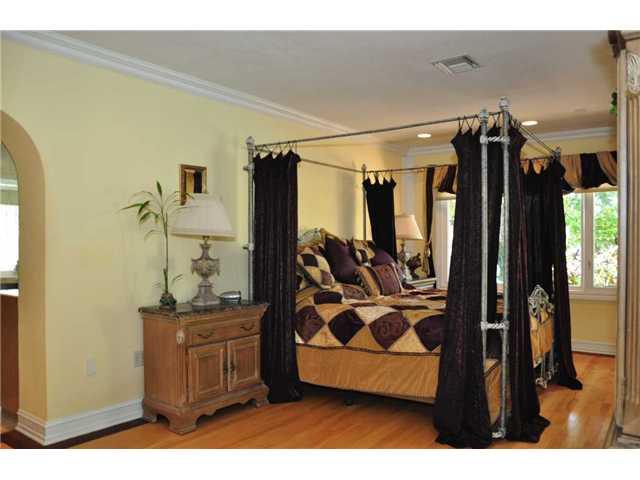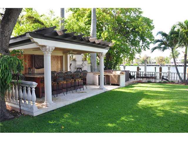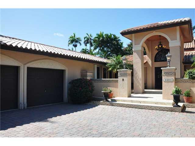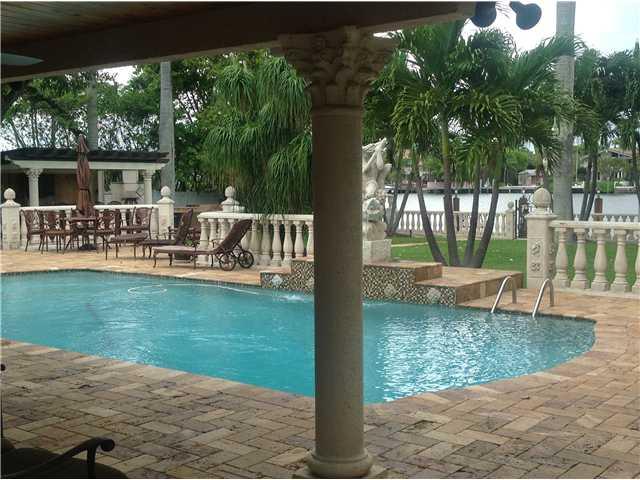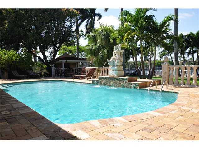 Elegant European-styled villa in Hollywood Lakes. Gorgeous corner property with 100' of waterfrontage & over 1/2 acre. Deep water with no fixed bridges. Living room features vaulted ceilings, marble floors, & custom-made fully equipped bar. State of the a rt kitchen with professional cooktop, granite countertops, stainless appliances. Large pool with fountain, surrounded by stone patio. Spectacular grounds with outdoor fireplace & sitting area, gazebo bar, brick pizza oven. 2-car garage & crescent driveway