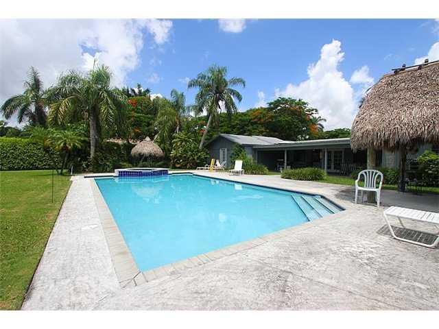 Expansive 4/3 pool home on deep 1.06/acre lot remodeled and expanded in the 90's features high tongue and groove ceilings and enjoyable open spaces. Fireplace in living, formal dining, huge kitchen w/dining counter and lots of storage. Master has adjacent extra room, large bath. French doors lead to a covered terrace poolside, great chickee hut. metal roof, 2 carports. Prime Pinecrest schools. Seize the opportunity to remodel, expand or build your dream home in an area of much more expensive properties!