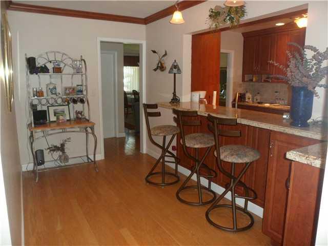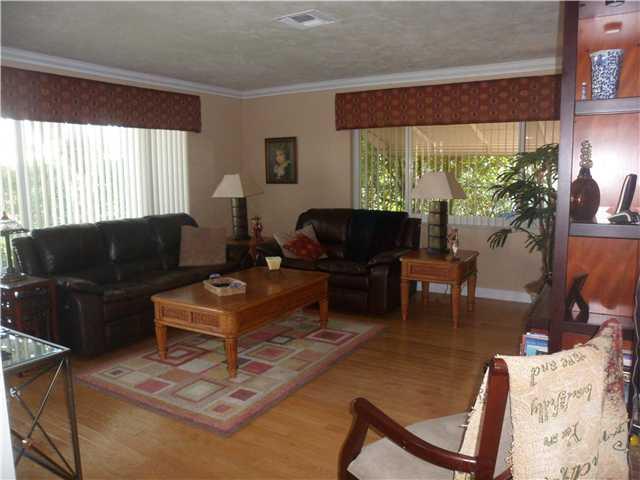 Very spacious pool home in great family neighborhood. Wood Floors throughout, New hurricane windows and patio doors. Recently remodeled kitchen with SS appliances and tumblestone back splash and grantic counters. Breakfast bar. Crown molding. 7 ceiling fans. Tankless water heater. Large master bedroom with extra large closet. Plaster ceilings & walls. New tile in baths. Automatic sprinkler system. Maintenaince free tiled back yard. New garage door. Freshly painted exterior. Gutters,Paver Driveway.