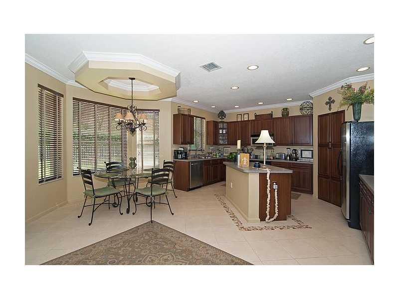 Stunning 4/2.5 home set on private lot with no neighbors behind! IMMACULATE! Beautifully landscaped FENCED yard. Upgraded center island kit w/tall Cherry cabinets & SS appliances, neutral diagonal tile, wood staircase w/wrought iron railing, French doors open to extended paved patio w/summer kit (BBQ, ref & side burner), designer touches (crown molding, chair rail, detailed ceilings, Plantation shutters, cutting edge security system), ACCORDION shutters upstairs, Guard Gated! Comm Clubhouse w/pool & more!