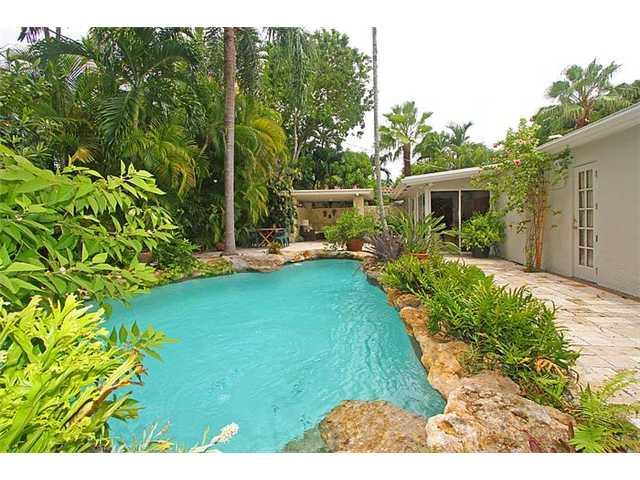 Nestled between a high coral rock fence and an exotic garden, this so "grovey" home, full of light, will be your own Coconut Grove paradise on the low traffic side of Douglas road. The property features 2 master bedrooms with 2 master bathrooms and a walk -in closet, 1 guest bedroom with a private garden and a full bathroom, a renovated kitchen, free style pool and a covered cabana for your dinners al fresco. Very private.
