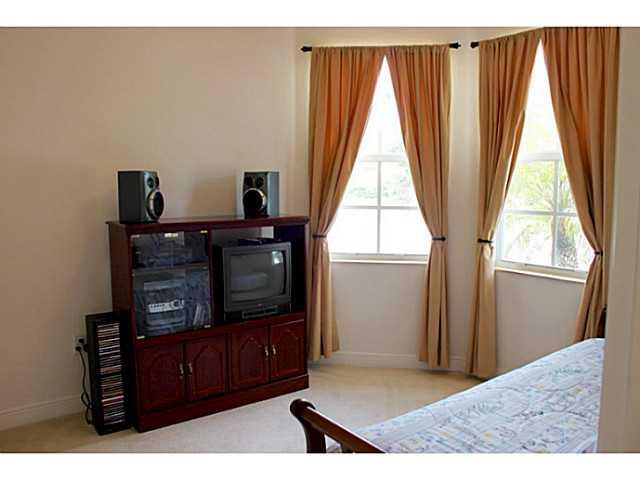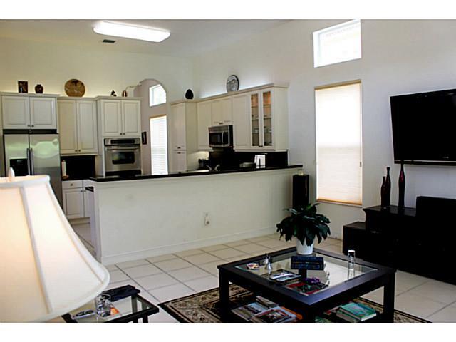 Pristine home in Sunset Falls. Lovely, 1 story, 4 bed/3 bath home.Tiled floor in living areas & carpeting in Bedrms. In Kitchen, you'll find cream wood cabinets & black granite counters with Stainless appliances to include double oven. Master Bath has 2 s eparate marble top vanities, separate shower & jacuzzi tub. Hunter Douglas blinds. 2 outdoor rear patios. Hurricane panels. Community has great amenities: pool, fitness, tennis, basketball plus.See attached for floor plan.ShortSale.Dimensions approximate